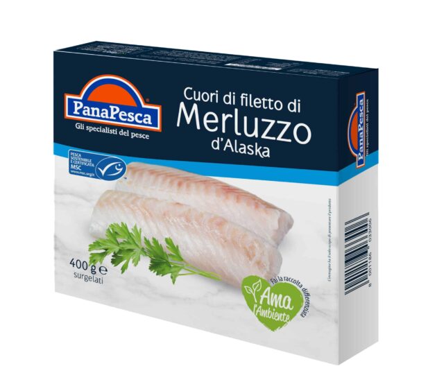 I Cuori di filetto di Merluzzo d’Alaska a marchio Panapesca vengono pescati nelle fredde acque dell’Oceano Pacifico, dove vengono sfilettati, puliti e surgelati dopo poche ore dalla pesca. Si tratta di filetti naturali, senza la presenza di additivi o coloranti, a basso contenuto di grassi e ricchi di proteine, ideali per un’alimentazione varia ed equilibrata.